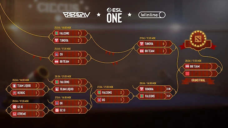 Плей-офф по традиции начался с матчей в виннерах, где явными фаворитами выглядели две команды - Team Falcons и BB. Оно и неудивительно, BB набрали просто сумасшедшую форму по ходу турнира, а не причислять TF к группе претендентов на чемпионство - моветон.