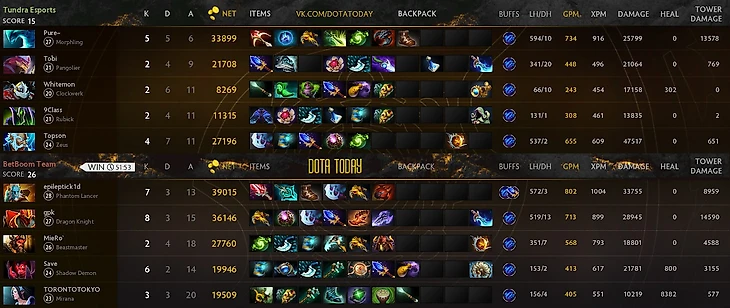 Финал виннеров должен был, нет, просто обязан был подарить нам потрясающую битву. Особенно было интересно посмотреть за противостоянием Pure и его бывших тиммейтов. Но получилось форменное избиение европейского коллектива. Да, именно так, и не стоит смотреть на графики первой карты - BB, имея тотальный аутдрафт, допускали неимоверное количество ошибок. И даже так им удалось победить. А про вторую карту и говорить нечего - полное уничтожение.