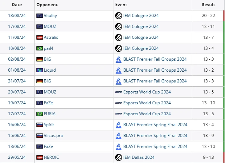 Но не будем забывать, что Natus Vincere стали чемпионами мейджора в Копенгагене в марте, а буквально месяц назад заняли первое место на Esports World Cup 2024.