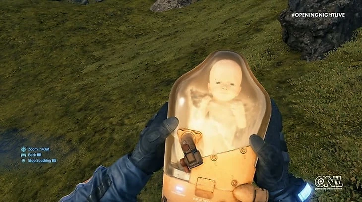 Еще в игре нужно периодически справлять малую нужду — и кажется, что Сэм облегчается еще и вместо младенца (помните, он подсоединен к капсуле пуповиной?). Кодзима поспешил оговориться, что уринация, естественно, не будет самой важной механикой, но без нее не обошлось. Кстати, если попытаться повернуть камеру, чтобы увидеть член главного героя, он будет постоянно отворачиваться.