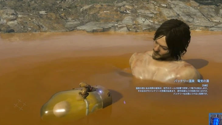 • Большую геймлейную роль играет отдых. Главный герой ходит в туалет (есть отдельные кнопки, чтобы сходить стоя или сидя), массажирует себе плечи, переводит дыхание, спит, вытягивает ноги, принимает душ. Во время перерыва также рекомендуется проверить состояние BB – возможно, его стоит убаюкать. А на горячих источниках протагонист может еще и искупаться вместе с малышом.