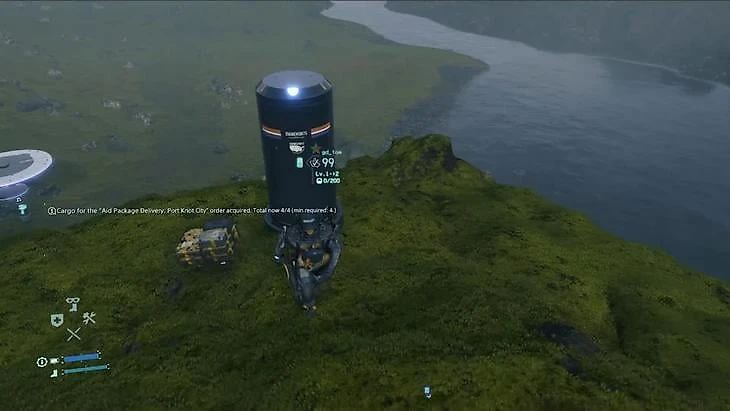 • Некоторые задания (доставки) начинаются, когда герой поднимает потерянный другими игроками груз, который нужно чинить с помощью специального спрея. В демо Сэм нашел контейнер со старой музыкальной системой, которую нужно принести Музыканту. В награду за доставку получатель отдаст вам гармонику – на музыкальном инструменте можно играть во время отдыха, используя сенсорную панель DualShock 4.