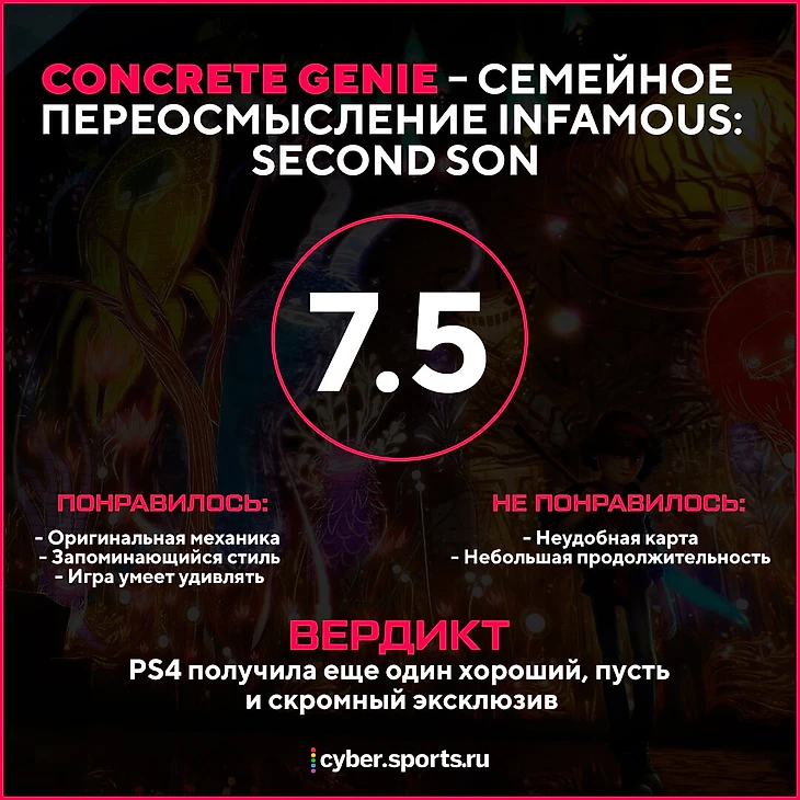 «Городские духи» – это, безусловно, хорошая игра и один из главных сюрпризов осени. Но помимо этого она показывает, насколько продвинулась игровая индустрия за одно поколение консолей. Лет шесть назад инди-игры представляли собой нечто совсем артхаусное или минималистичное, а теперь они могут предоставить опыт, местами напоминающий флагманские блокбастеры. Конечно, по уровню постановки и зрелищности между ними пропасть, но такие проекты как Concrete Genie заставляют поверить, что с годами игры развиваются не только графически.