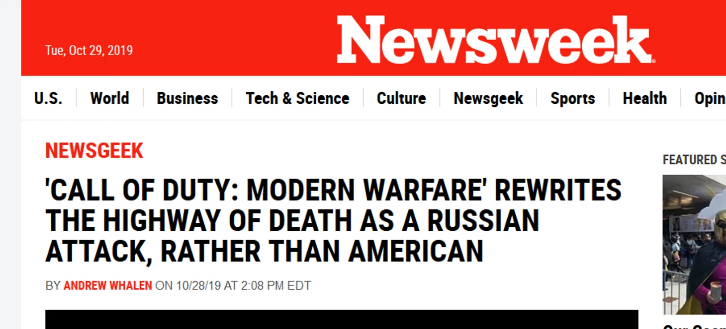 Тем временем западные СМИ тоже пишут о представлении русских в новой Modern Warfare. Главная тема – то же «Шоссе смерти», вдруг ставшее военным преступлением России, а не США.