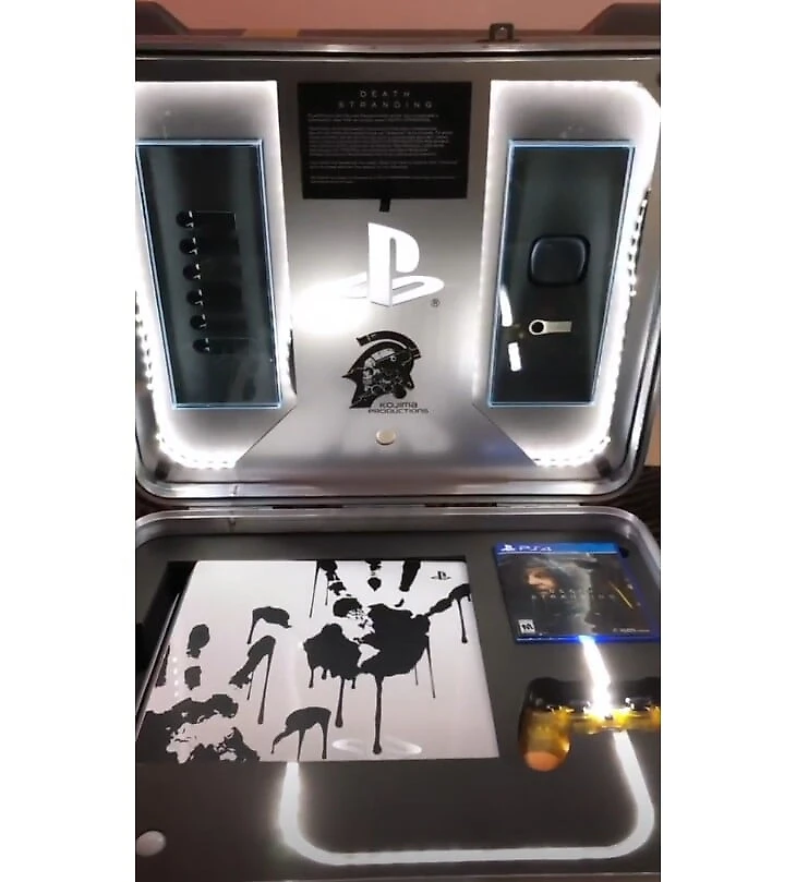 Когда блогеры наконец открыли кейсы, в них оказались лимитированная PS4 Pro и DualShock 4 в стиле игры, реплика ожерелья главного героя Death Stranding Сэма, беспроводные наушники с шумоподавлением от Sony, флешка с саундтреком и диск с самой игрой.