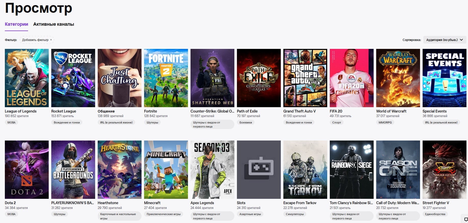 • В обычные дни число одновременных зрителей Twitch держится на уровне миллиона человек, а во время крупных мероприятий аудитория увеличивается в разы. Например, ивент с масштабным обновлением королевской битвы Fortnite, когда игра на два дня превратилась в статичный экран с черной дырой, на пике смотрело более 1,5 млн человек. Крупные турниры по Dota 2 и League of Legends набирают по два миллиона зрителей.