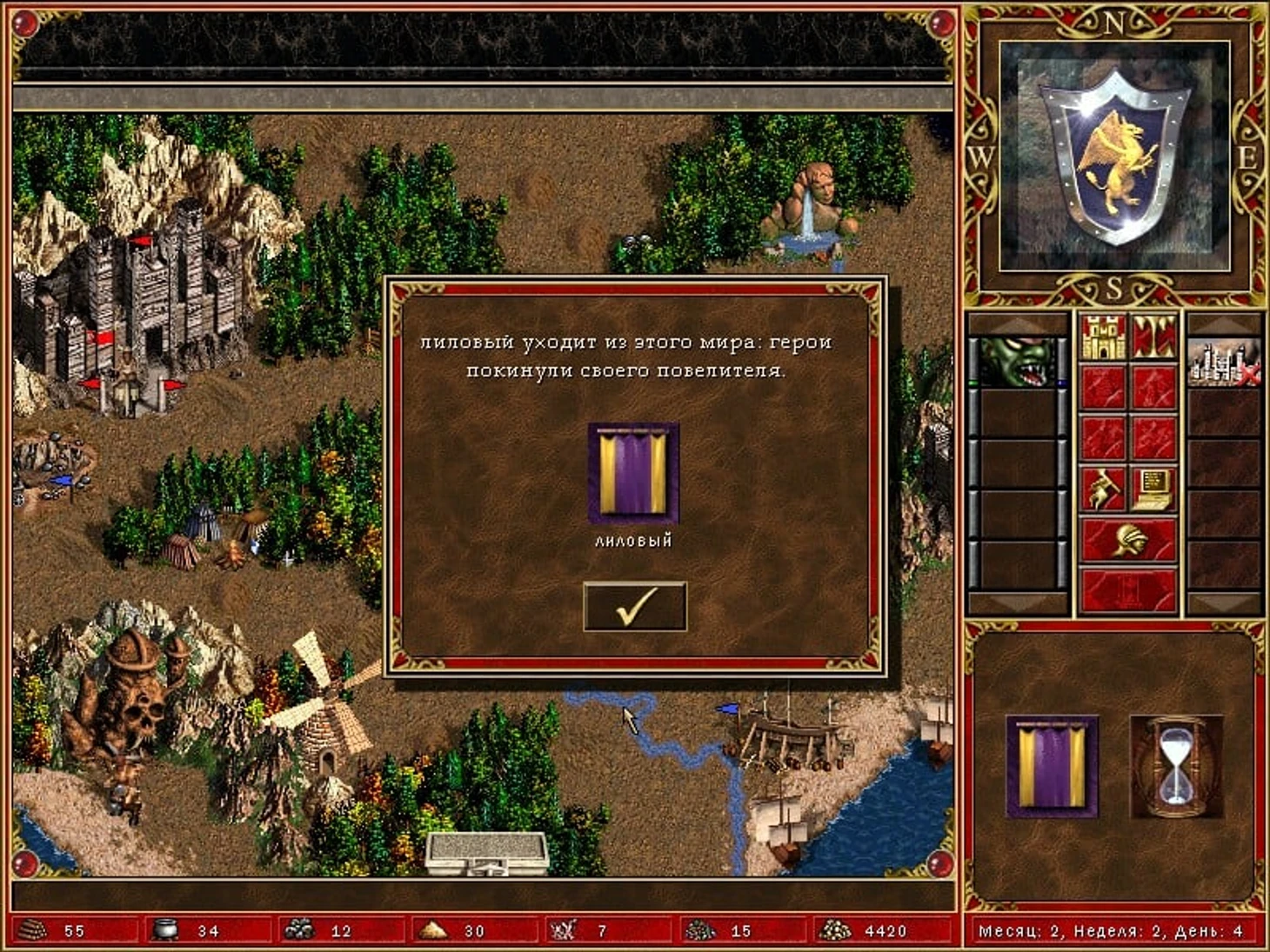 Со второй попытки я действовал уже более уверенно, каждый день возводил постройки в городе, не тратил ходы вхолостую и, к своему стыду, узнал, что ближайший замок изначально ничейный. После чего захватил его и принялся копить армию уже с двух городов. Даже построил корабль и переплыл на другой берег, где напал на другого героя... Чтобы снова умереть, разумеется.