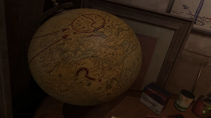 В штабе Аликс есть, на первый взгляд, ничем не примечательный одноцветный глобус. Если присмотреться и прокрутить его, можно увидеть обведенный маркером круг где-то в России – это подтверждает то, что Сити 17 находится где-то в СНГ. Впрочем, об этом мы и так догадывались.