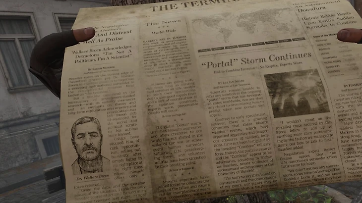 На лавочке в начале игры лежит газета сразу с двумя статьями о докторе. В одной рассказывается, как Брин сдал планету Альянсу, утверждая, что «это единственный возможный выход». В другом материале его решение критикуют, упоминая, что Альянс установил враждебные отношения с потусторонними существами из Зена.