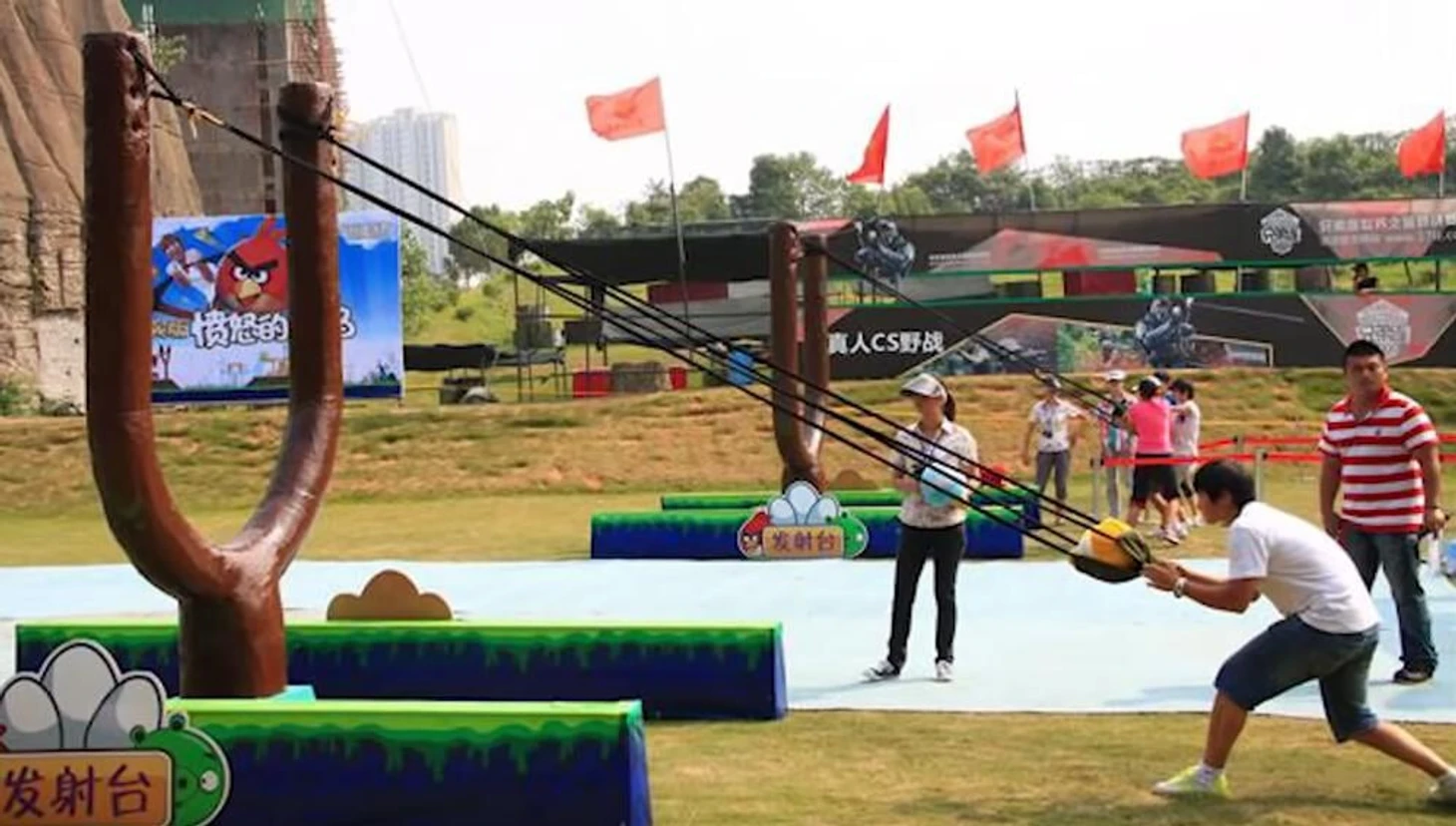 В Китае официального парка по игре не было, зато там появился аттракцион: посетителям нужно было выстреливать игрушечными птицами из гигантских рогаток, целясь в большие надувные шары.