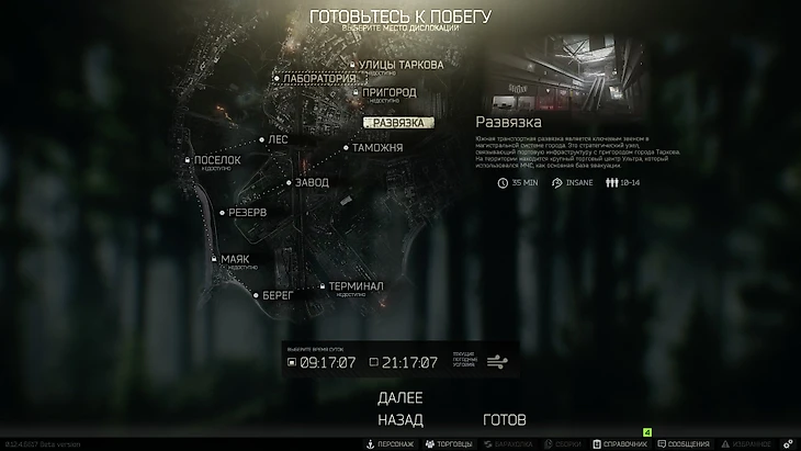 Escape from Tarkov просто не может определиться, какой игрой он хочет быть. Особенно это очевидно за пределами рейдов. Самый безобидный пункт меню – схрон, где вы можете дать вещи основному персонажу для использования в бою, рискуя потерять их в случае гибели. Дальше идет торговля: с несколькими NPC, на аукционе, обмен с другими игроками. Везде разный ассортимент, рублевые цены, определяющиеся в реальном времени («живая экономика!»). У тех же персонажей-торговцев можно взять побочные квесты: терапевт, например, просит найти и эвакуировать 5 аптечек определенного производителя.