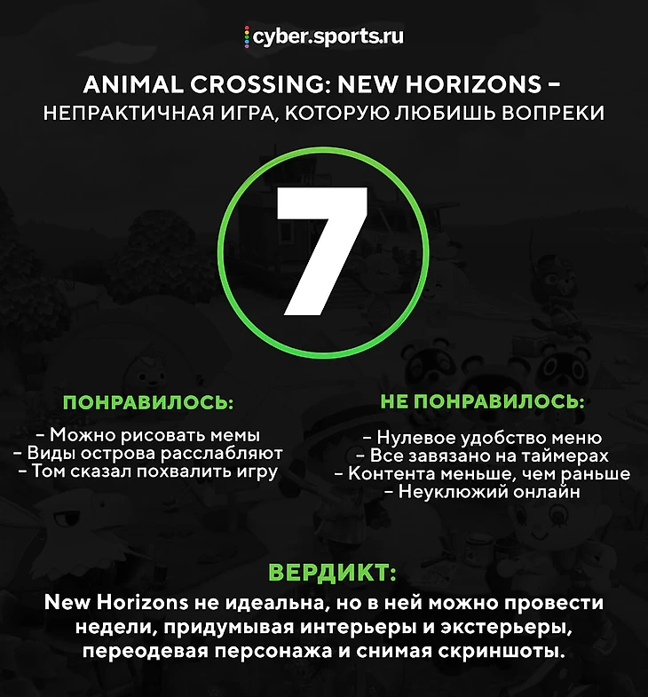 Со стороны кажется, что это красочная и милая утопия, поэтому в ней застревают неделями, и даже в России игра так популярна, что ее сложно купить из-за дефицита. Вот только счастливые (как вам кажется) игроки умалчивают о дьявольских механиках, которые прячутся за дружелюбной картинкой. Я провел в New Horizons несколько десятков часов и готов рассказать уродливую правду.