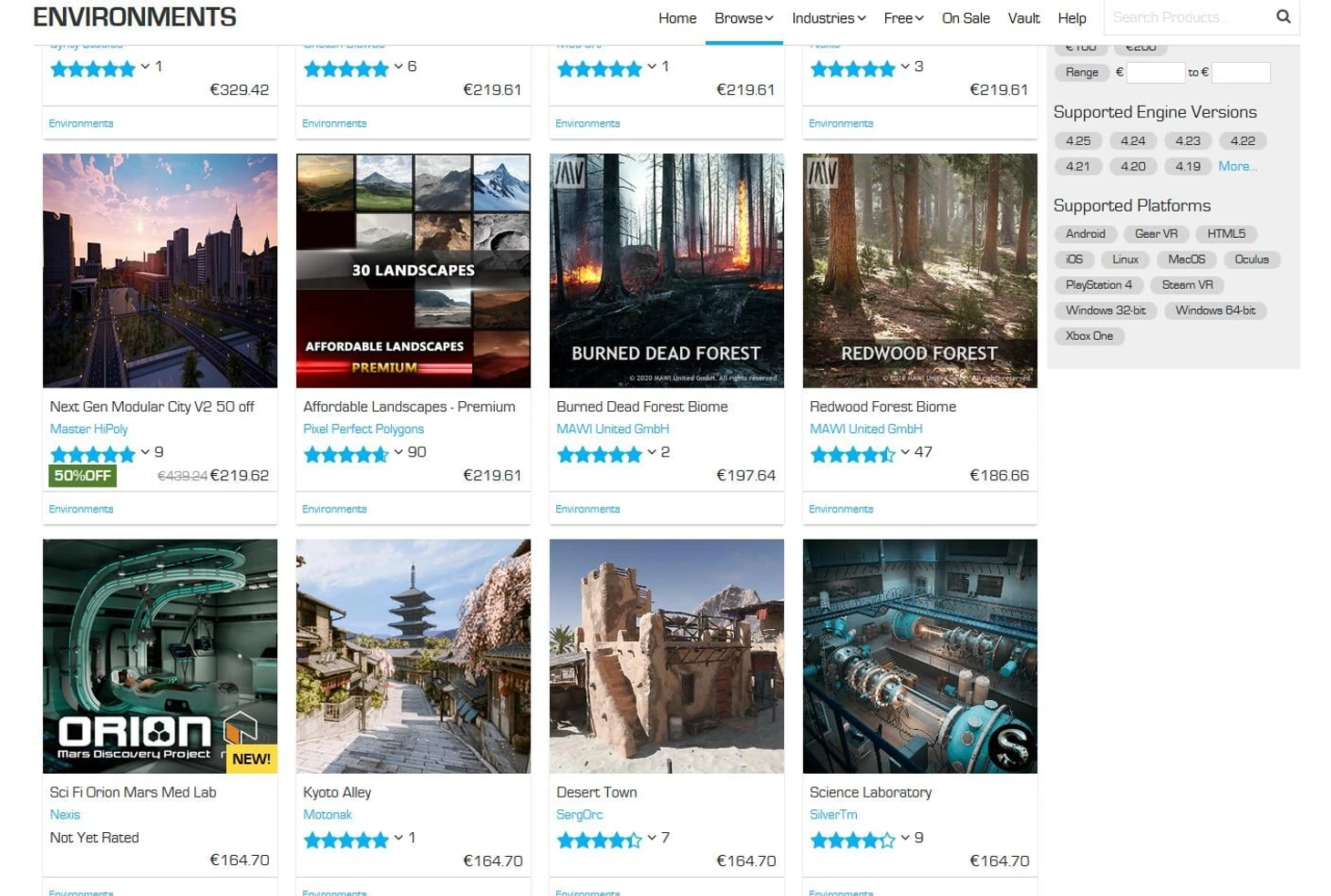 Творческие навыки в современной инди-разработке, конечно, крайне желательны, но не обязательны. Локации, модели персонажей, анимации, звуковые эффекты и даже программные модули можно загрузить в официальном магазине Unreal Engine 4, а затем использовать в своем проекте любые их комбинации. Такие товары (ассеты) выкладывают разработчики со всего мира: кто-то предлагает свои работы бесплатно, другие выставляют ценник от нескольких до сотен евро.