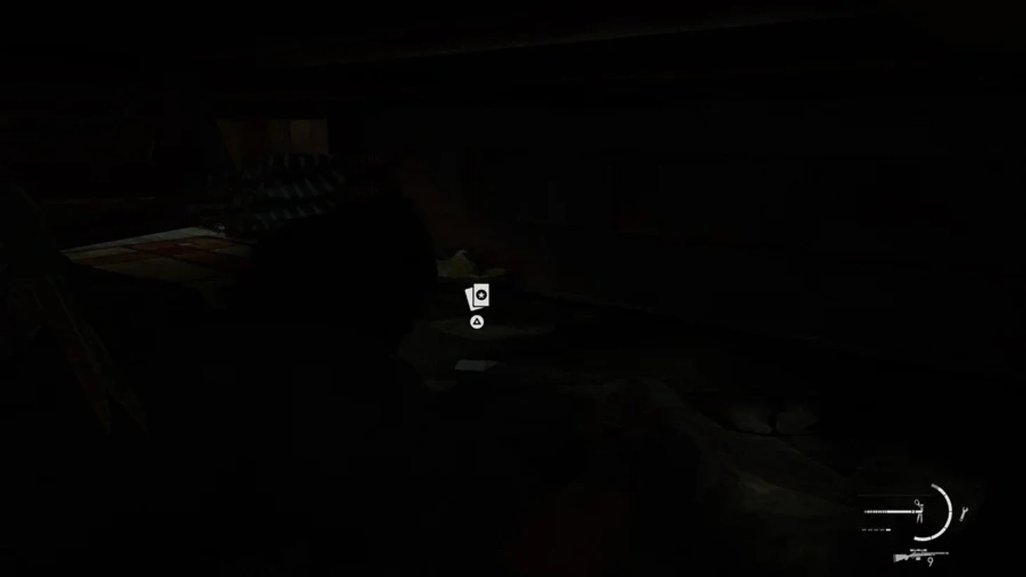 После игры с собакой мы спускаемся вниз, чтобы взять оружие. Монета лежит на земле у правой стены.
