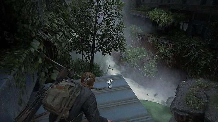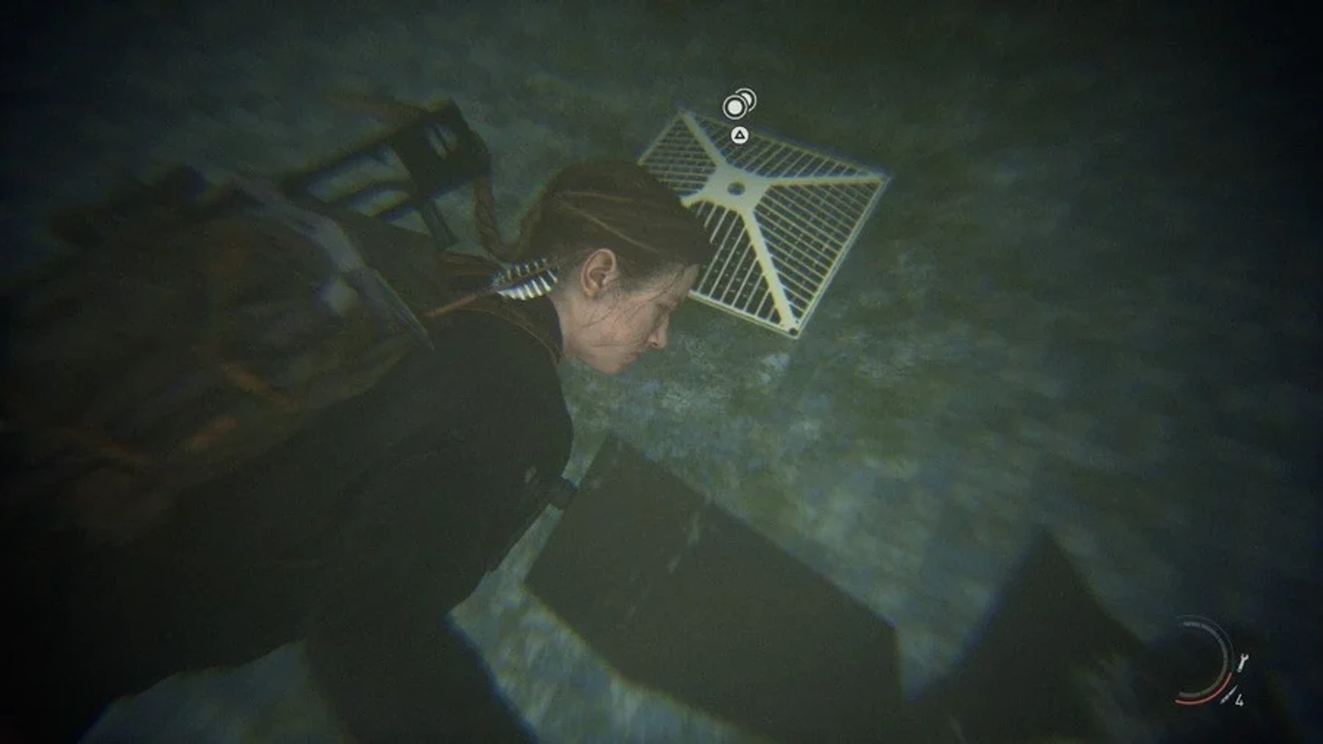 Как только получаем управление Элли в Хиллкресте, идем направо и вниз. Разбиваем окно затопленной машины.