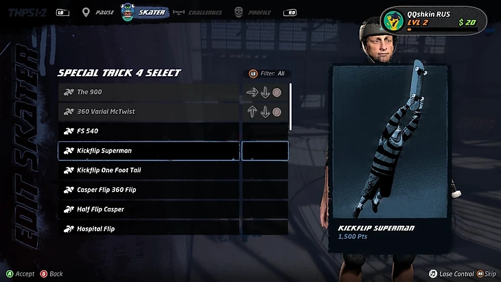 Похвально, что даже набор трюков не ограничился списком из оригинальных игр: добавили роули даркслайд Джеффа Роули, хардфлип бэксайд Аори Нисимуры и не только. В довесок идут десятки новых обычных мувов – полную игру обещают набить контентом под завязку.