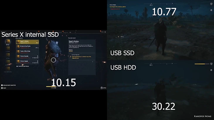 Игры для Xbox One, запущенные с внешних носителей, все равно грузятся гораздо быстрее, чем на Xbox One X. При этом довольно дорогостоящий USB SSD почти не уступает по скорости внутреннему накопителю, а вот хороший HDD отстает примерно в три раза: