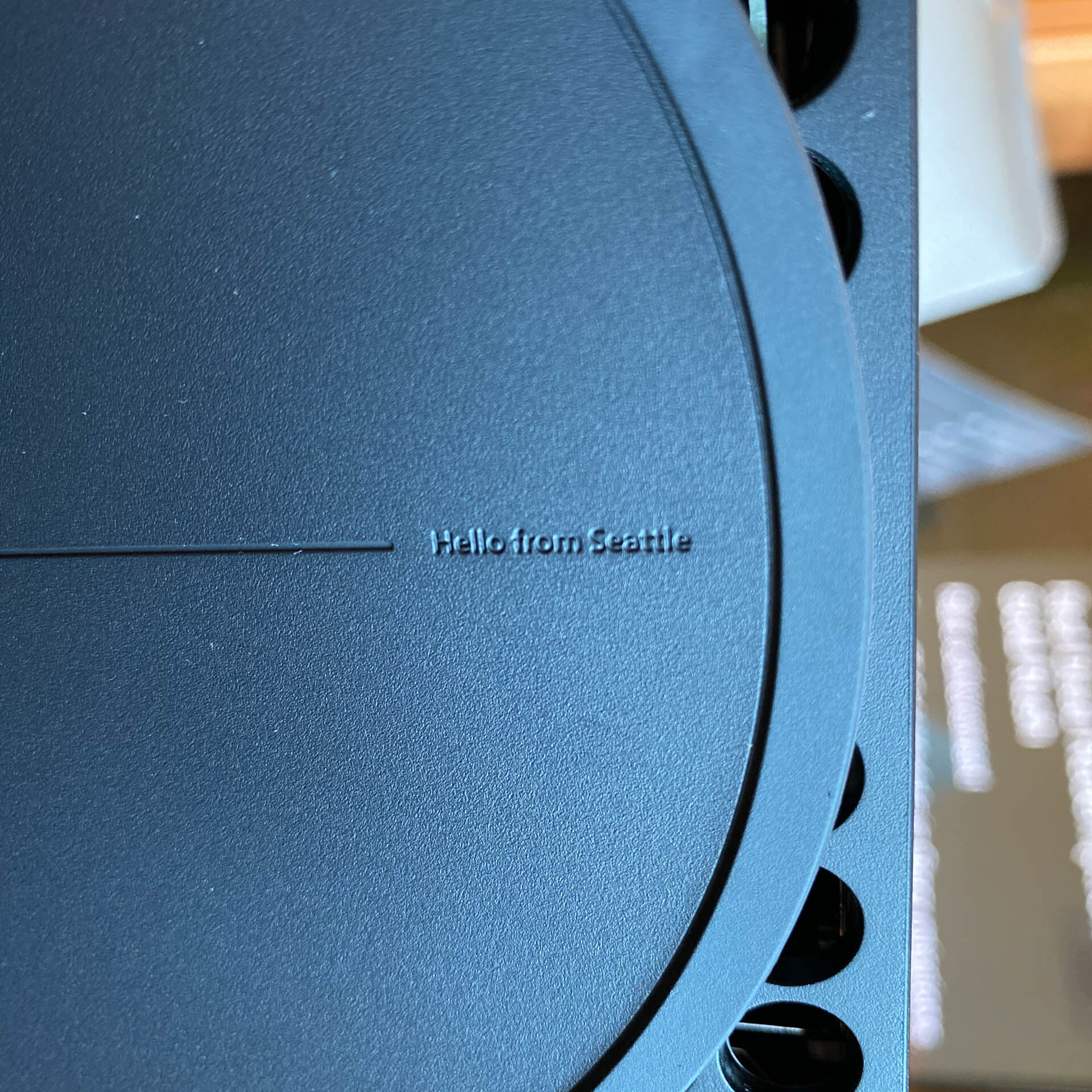 Несъемная подставка с крошечной надписью «Привет из Сиэтла»: