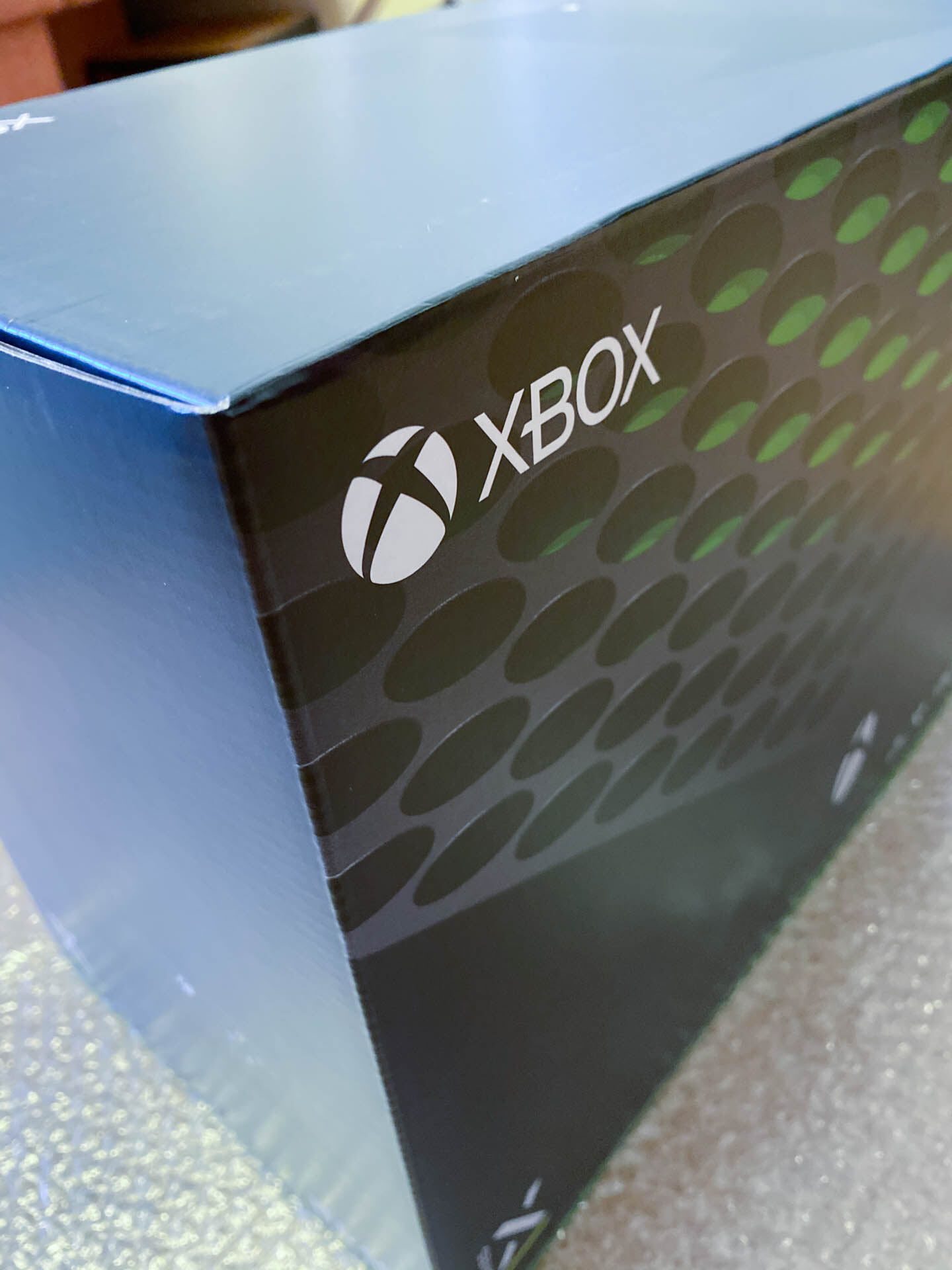 Xbox Series X упакована в красивый картонный рукав и черный обертку: