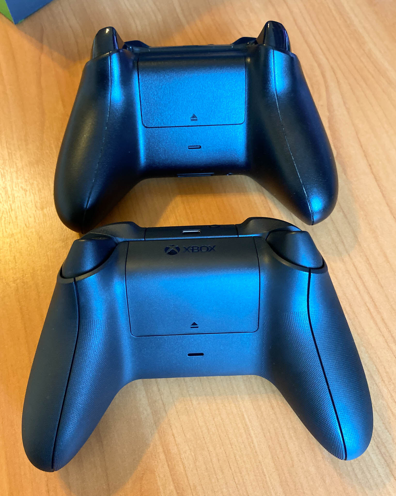 На фото ниже отчетливо видно, что новый контроллер в целом выполнен из более матового материала. Хотя, конечно, он еще не был в использовании и не успел засалиться от рук (даже чистых):