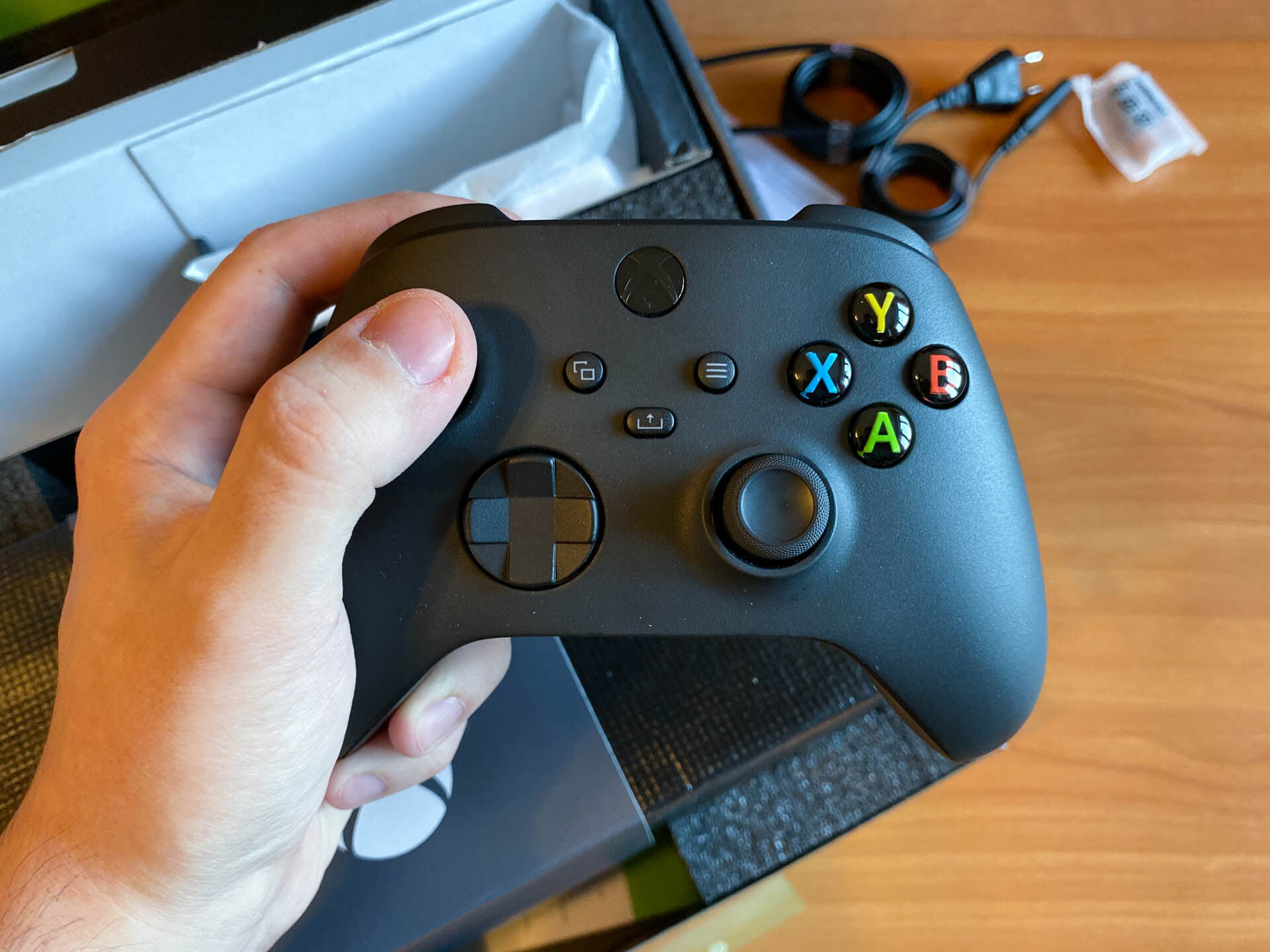 О геймпаде расскажу подробнее отдельно – позже, – но внешне он практически не отличается от контроллера Xbox One X. Появилась кнопка Share, поменялась крестовина, а еще часть с бамперами и триггерами стала матовой – ура!