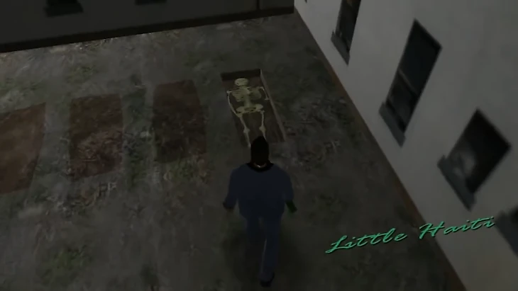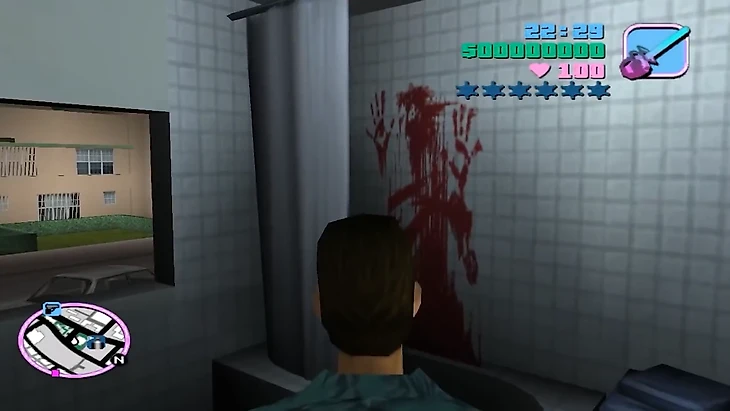 На первый взгляд это вполне обычная квартира, но стоит зайти в ванную и вы увидите залитые кровью стены – тут явно кого-то убили. В том же помещении можно подобрать бензопилу, завершающую жуткую мизансцену. Все это можно считать отсылкой к фильму «Лицо со шрамом», с которым часто сравнивают Vice City.
