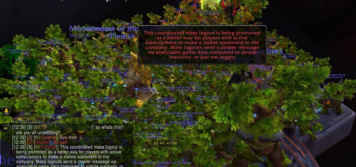 «Этот скоординированный массовый логаут используется как лучшая возможность для игроков с активной подпиской сделать заметное заявление в адрес компании. Благодаря анализируемой игровой статистике массовые логауты имеют более четкий посыл, чем AFK или решение не заходить в игру».