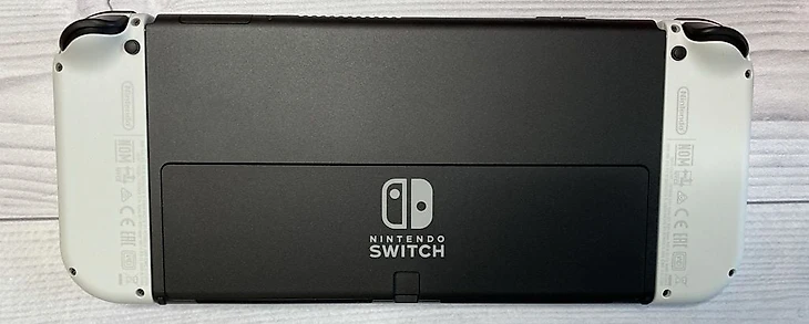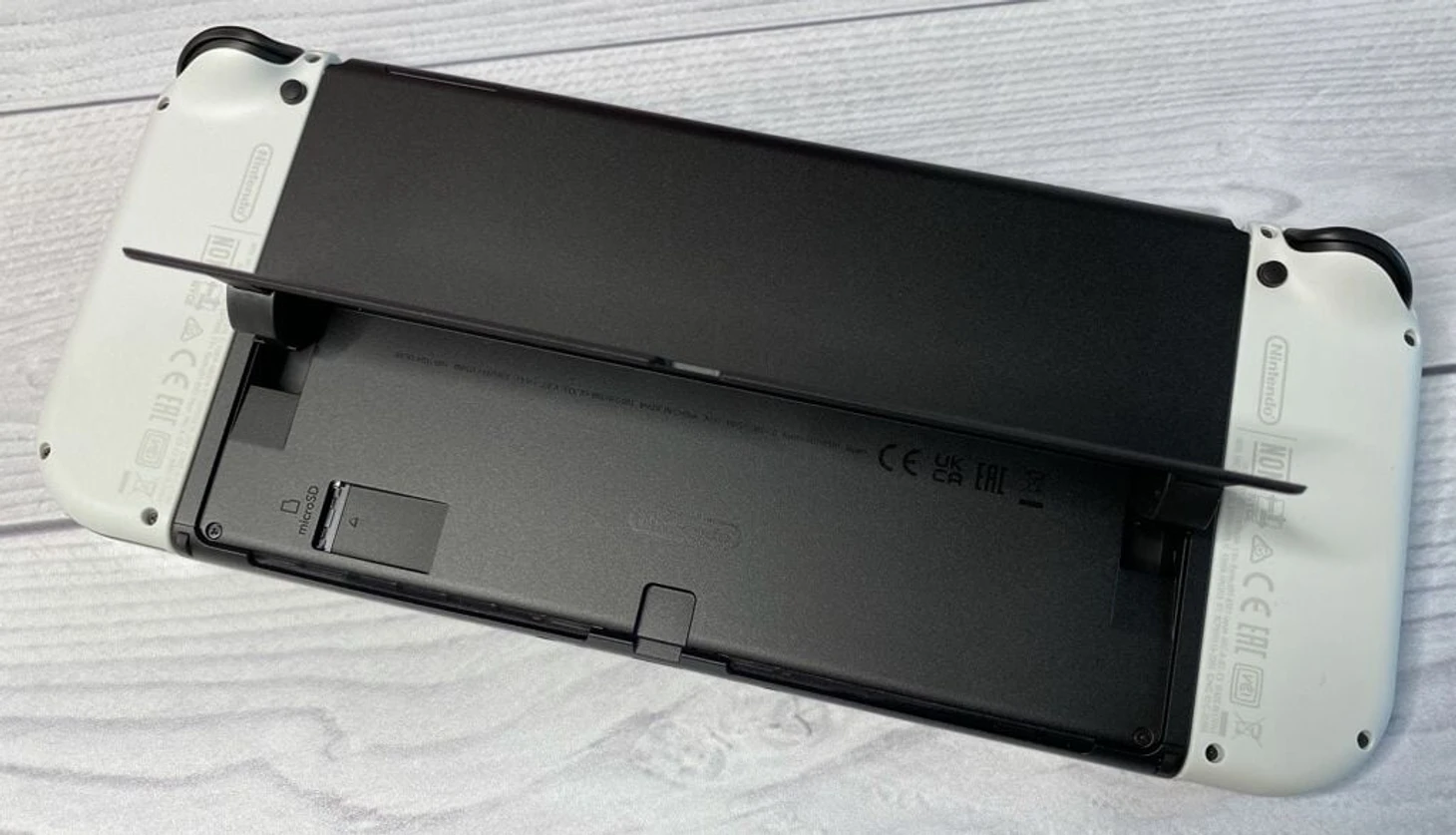 Снизу Switch OLED отличается от обычного Switch, внезапно, отсутствием наклейки со штрих-кодом.