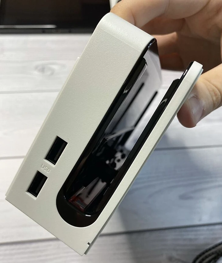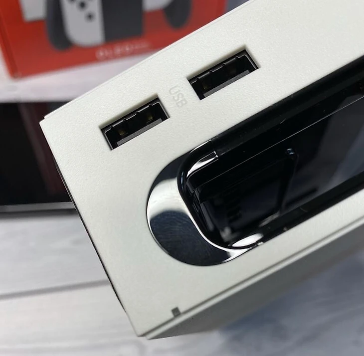 Черная середина док-станции полностью глянцевая. Возможно, более мягкая поверхность минимизирует риск поцарапать экран Switch при его соединении и разъединении с доком.