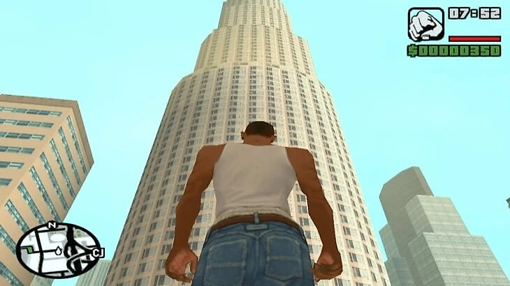 Еще больше восторга игра начала приносить, когда кто-то – кажется, одноклассник – научил меня первым чит-кодам. Вводишь BAGUVIX, AEZAKMI – все, начинается настоящая San Andreas, без забот и ограничений. Меня вообще не смущало, что из-за включенного бессмертия и выключенного уровня розыска в игре пропадает челлендж. Я воспринимал ее именно как песочницу, что в те времена еще было новым концептом. Покататься на всех машинах, залезть на каждый небоскреб, поиграть в мини-игру в тренажерном зале, прокачать стрельбу – было весело заниматься этим просто так, без какого-либо контекста.