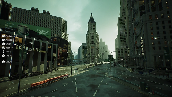 Еще можно убрать кинематографический фильтр Матрицы и убедиться, что картинка выглядит шикарно даже без жесткой постобработки. Наконец, поиграться с разными режимами рендеринга: можно увидеть полигоны, из которых состоит окружение, и так далее.