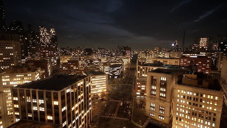 После безумной погони, в которой все взрывалось и рушилось, начинается вторая часть технодемо: вам дают возможность свободно побродить по Матрице. Тут вау-эффект немного стихает – город, что вполне логично, выглядит довольно бездушно и скучно. Зато можно свободно полетать над улицами и, например, поменять положение солнца и убедиться, что все освещение в игре – не нарисованное художниками по свету, а настоящее, просчитывающееся в реальном времени.