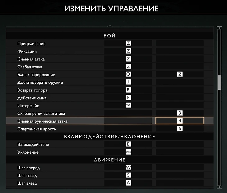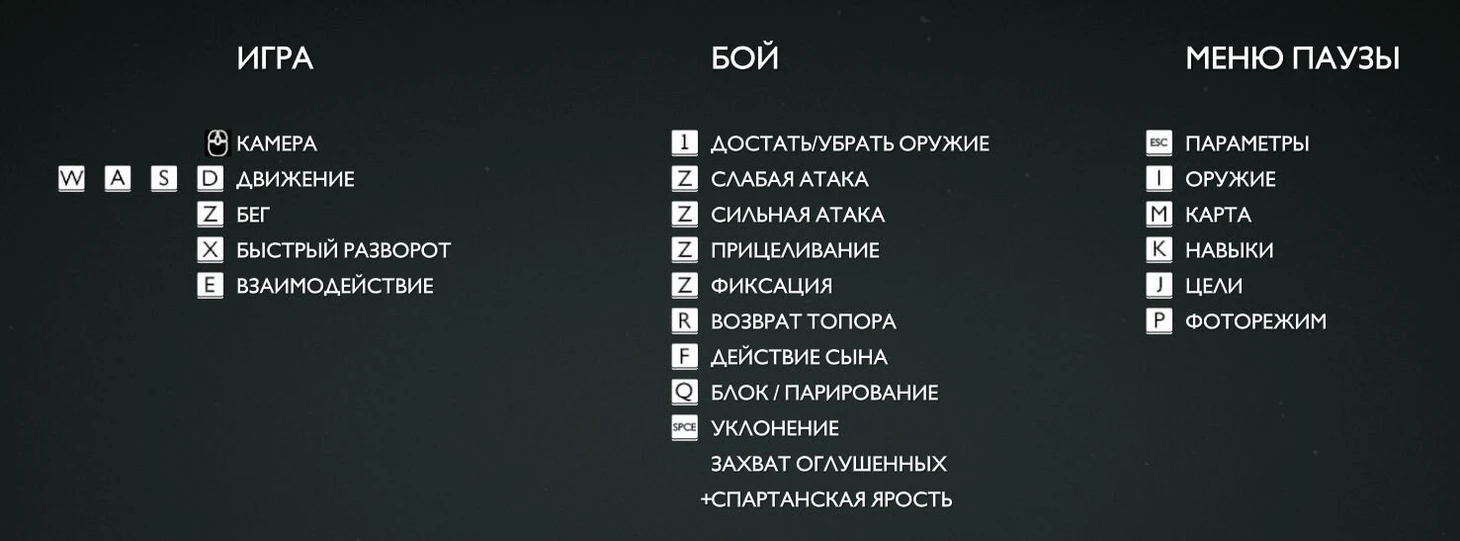 God of War удивительно хорошо играется на связке клавиатура+мышь – это касается и интерфейсов меню. Также в настройках можно свободно поменять все бинды, но мне было комфортно и со стандартной раскладкой.