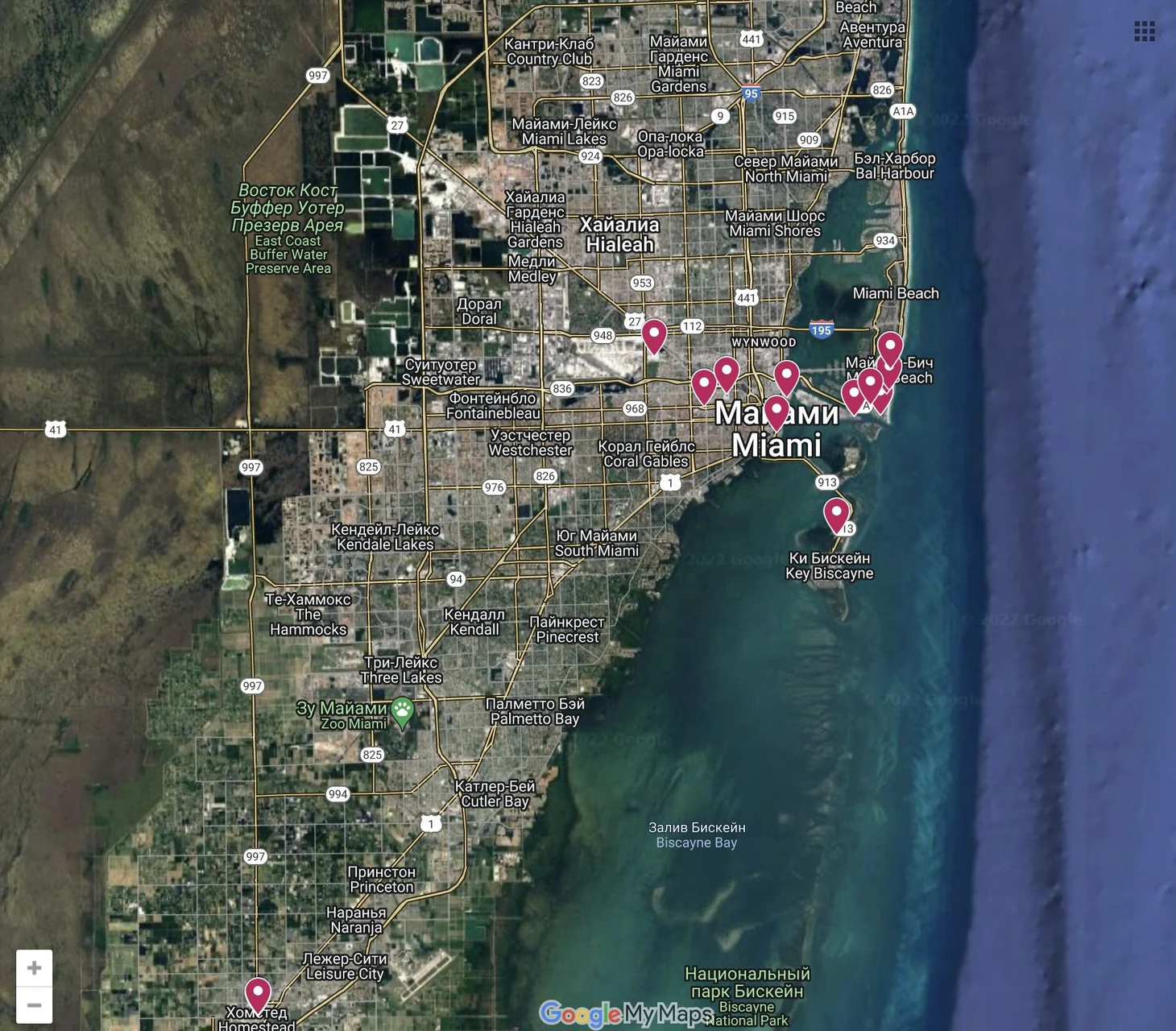 Так мы узнали, что местом действия GTA 6 вновь станет Вайс-Сити, вымышленная вариация реального Майами. Разумеется, фанаты уже собирают карту игры на основе утечки – точнее, расставляют скриншоты на карте Майами. Ведь многие места в игре, разумеется, основаны на реальных достопримечательностях.