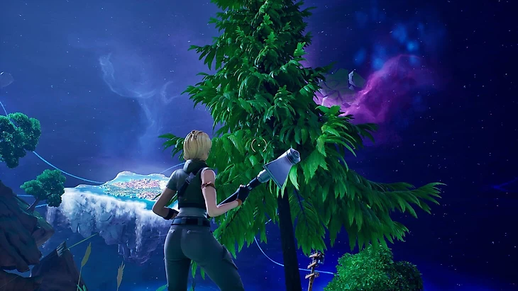Nanite – обеспечивает высоко детализированную геометрию. То есть теперь все объекты на экране – здания, их отдельные кирпичики, доски и сколы – стали гораздо более «рельефным». Вы наверняка сами регулярно замечали, что в играх полно визуальных обманок: поверхности, кажущиеся объемными за счет грамотно нарисованных текстур и тесселяции, на самом деле довольно плоские. Nanite решает эту проблему без катастрофического ущерба производительности. Это касается даже растительности: теперь каждое дерево в Fortnite состоит примерно из 300 тысяч полигонов, в игре полноценно прорисовывается каждый камушек, цветок, травинка.
