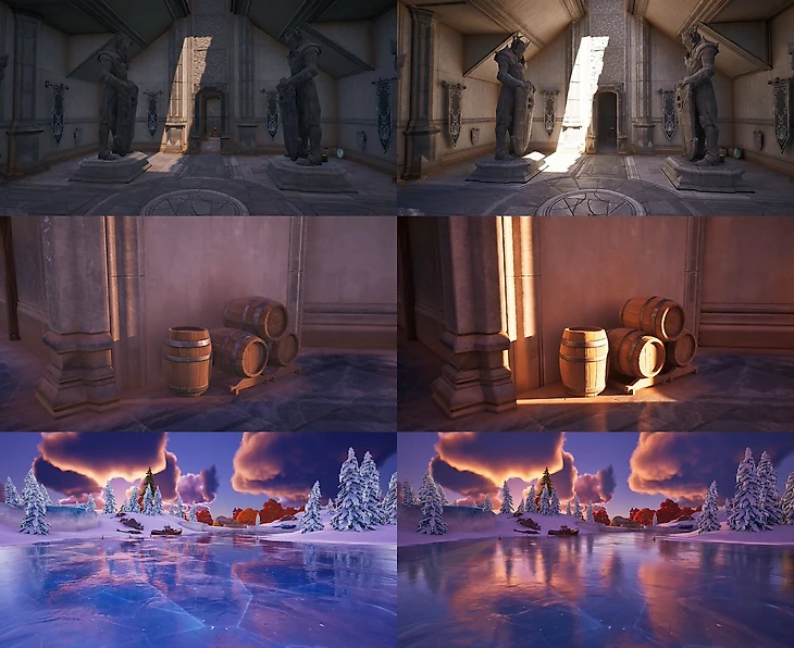 Сравнение графики Fortnite до перехода на Unreal Engine 5.1 и после