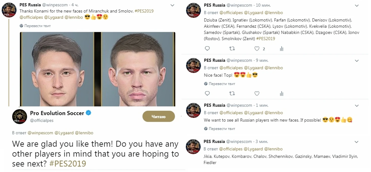 В Konami же подошли к чемпионату России основательно: через Twitter разработчики поинтересовались у русских игровых сообществ насчет игроков РПЛ, которым стоит добавить лица. В ответ прилетел немаленький такой список: