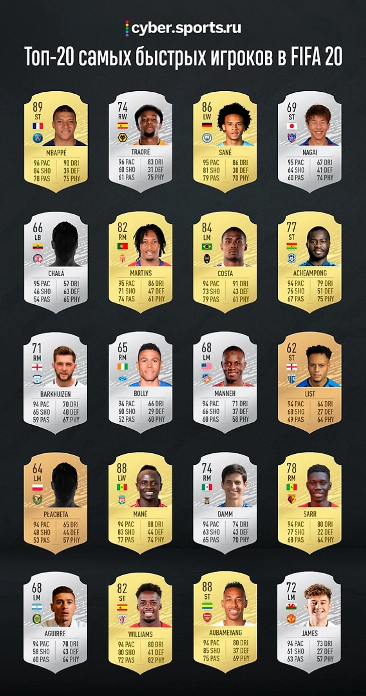FIFA 20 уже вышла – пока только для владельцев подписок EA Access и Origin Access. Мы уже разбирали топ-100 лучших футболистов популярного футсима. Пришло время для тематических топов и одной из важнейших характеристик – скорости.