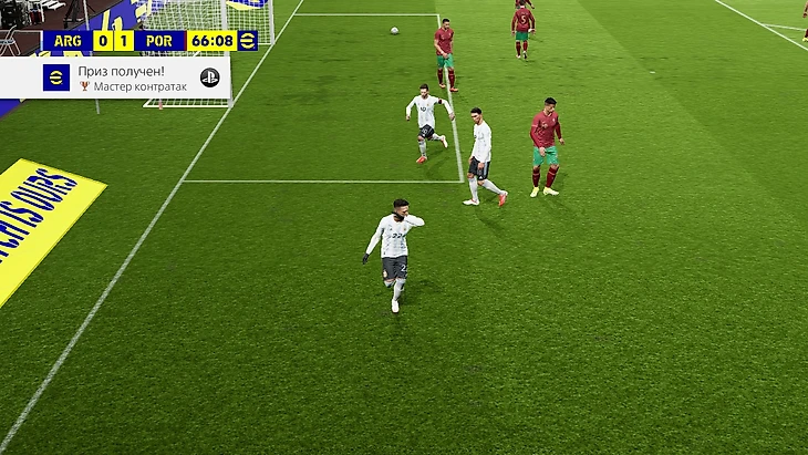 Сразу после установки предлагают сыграть матч между Аргентиной и Португалией. Так вот, я не мог найти на поле Месси и Криштиану Роналду. Футболисты пикселизировались – и их сложно было отличить с общей камеры. Да и на крупных планах выглядит не очень.