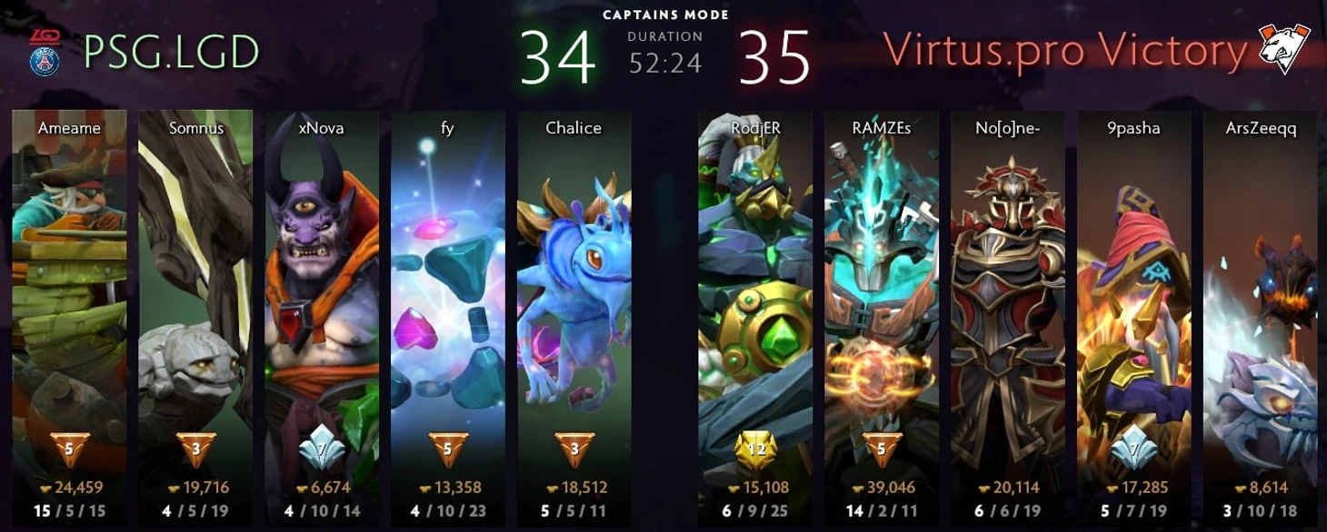 К последней стычке Ame нафармил вторую, но LGD, кажется, уже были в отчаянии. Драка под базой Virtus.pro позволила Нуну и Паше выкупиться и вернуться в драку, Рамзес прожал Рефрешер Шард и разрубил Аме с двух ультимейтов. Ультракилл – и первая победа над PSG. LGD за полтора года.