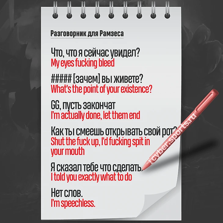 Но мы действительно не слышали от Рамзеса идеального английского. И чтобы Роману было проще в первое время в Америке, Sports.ru подготовил для него разговорник для игры в пабе.
