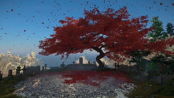 Что же касается синтоизма, то здесь все гораздо интереснее. Дзину постоянно встречаются синтоистские святилища, которые расположены в труднодоступных местах и куда герой для начала должен добраться. Это вносит в привычный игровой процесс элемент паркура, но простенького, не уровня первой «Assassin’s Creed» или серии «Dying Light». Также на пути к этим святилищам можно встретить и полюбоваться на многочисленные ворота-тории, один из характерных символов Японии.