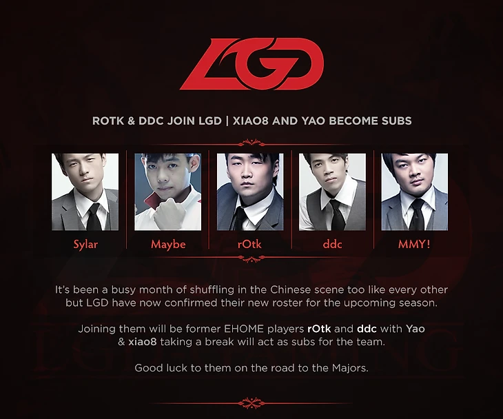 LGD подтвердили новый состав на сезон. Yao и xiao8 – в качестве запасных.