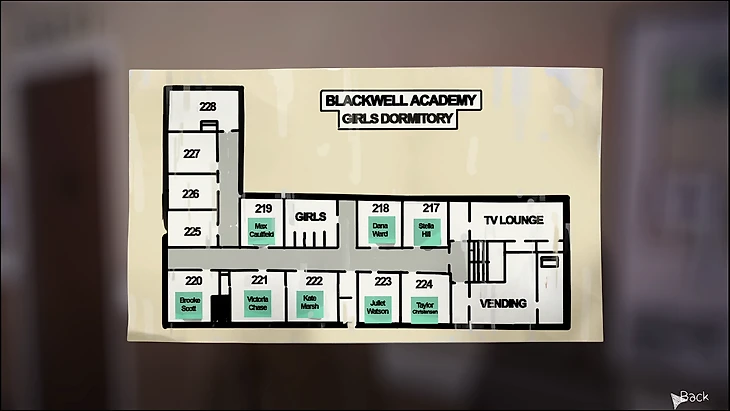 Теперь вспоминаем игру. Подобно Джеймсу Каслу, Кейт Марш тоже собирается выпрыгнуть, но не с окна, а с крыши. В ее случае это более резонно. Если мы посмотрим на план общежития, то увидим, что комната Кейт находится на втором этаже.