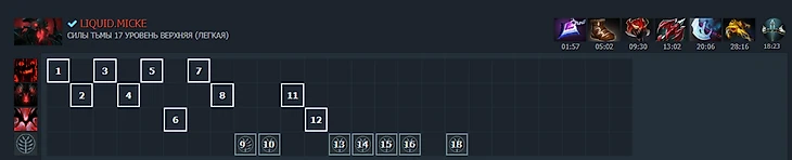 А это раскачка Shadow Fiend 2-ой позиции от Gpk в матче против Tundra: