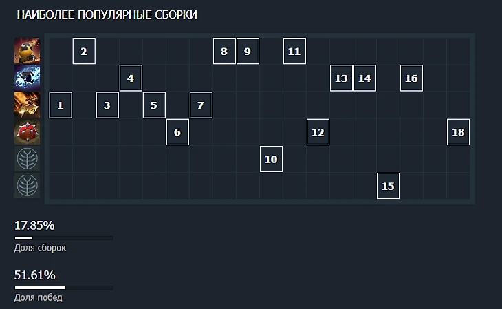 Самая популярная прокачка на Дотабаффе выглядит так:
