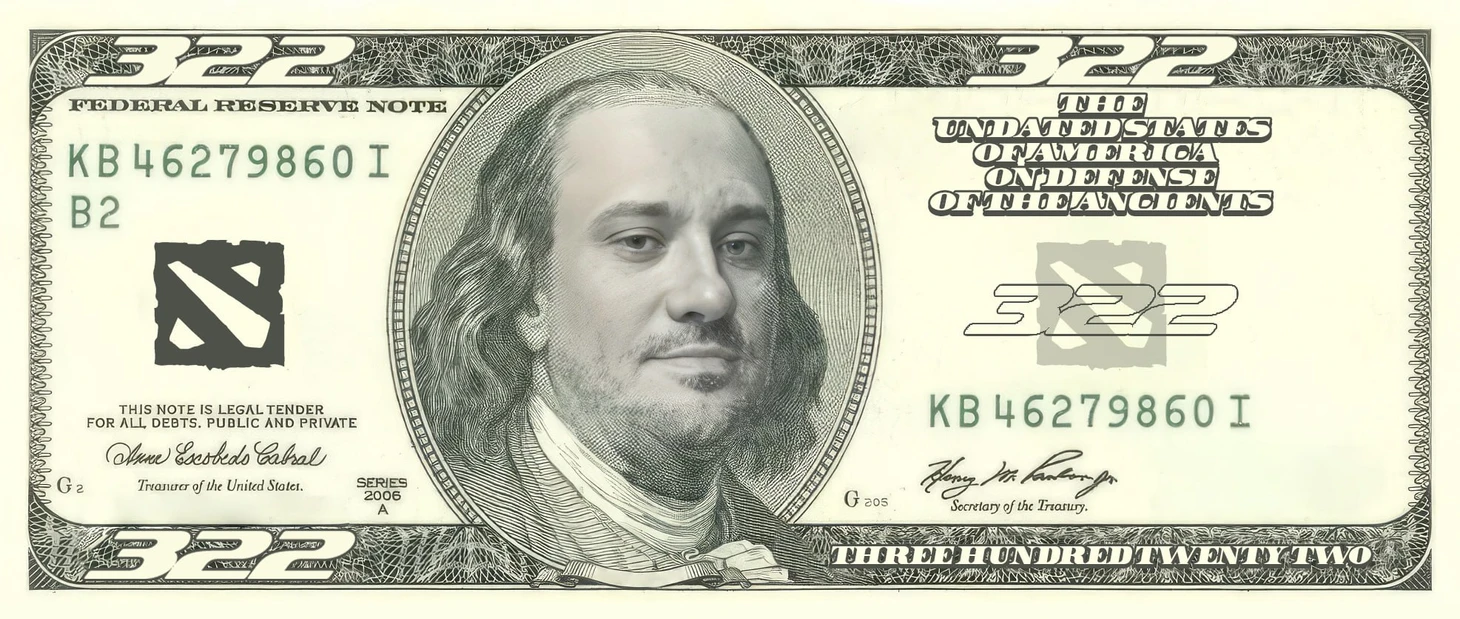 Самый популярный мем, давно вышедший за пределы Доты. В 2013 году Соло выиграл именно столько долларов за слитую игру – и навсегда привил числу 322 значение договорного матча.