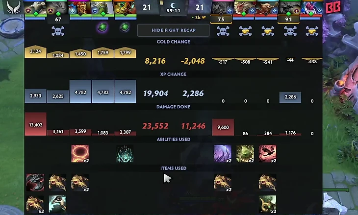 20 минут позади. Драк нет, зато PARIVISION доминируют по фарму. Уже 9к преимущества!