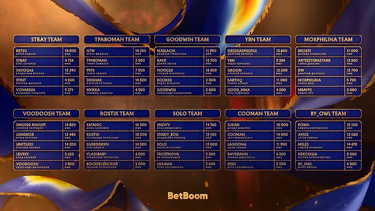 Вот такие составы играют на одиннадцатом BetBoom Streamers Battle. В скобках указан MMR игроков.