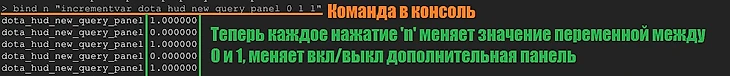 bind [key] "incrementvar dota_hud_new_query_panel 0 1 1"